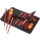 15 varillas intercambiables VDE con 2 porta-puntas 817 VDE Kraftform en bolso robusto para llevar en el cinturón. Herramientas probadas una por una según la norma IEC 60900. Se realizan pruebas individuales en baño de agua a 10.000 V para poder garantizar un trabajo seguro bajo la tensión permitida de 1.000 V.