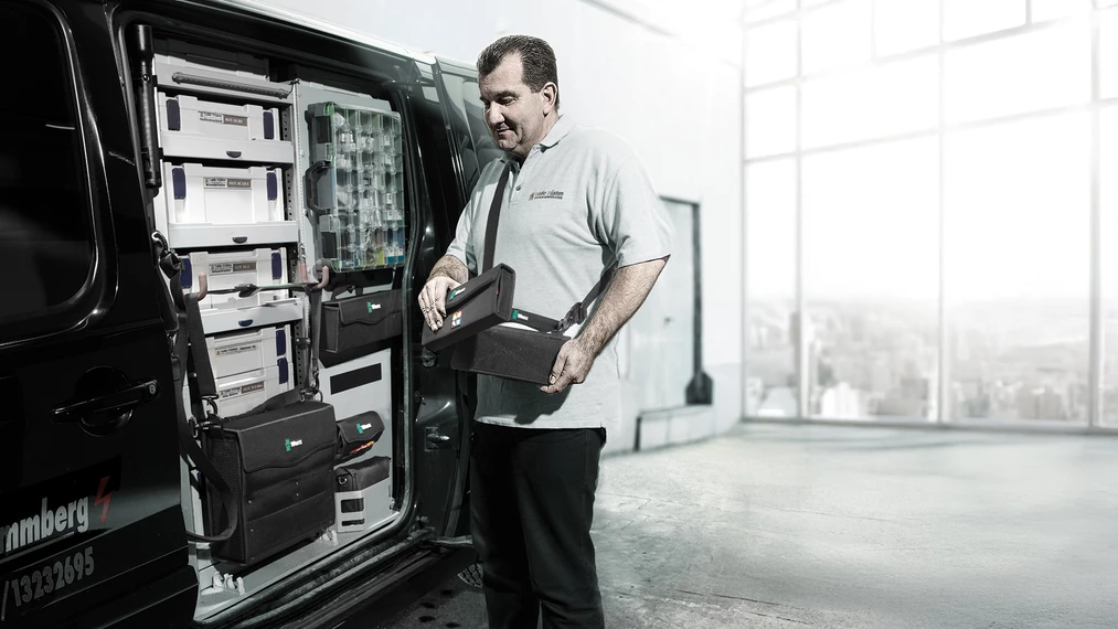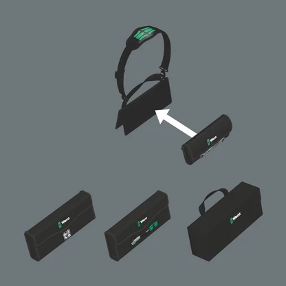 - Para acoplar las cajas y los bolsos de material textil de Wera que llevan una zona de conexión autoadhesiva