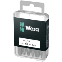 Embouts Wera extra-rigides pour vis Phillips, à usage universel. Hexagone 1/4" pour porte-embouts selon DIN ISO 1173-D 6,3.