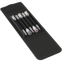 Jeu de douilles à embouts six pans creux, avec fonction de retenue pour un vissage particulièrement commode allié à un risque amoindri de perdre la vis lors de son acheminement vers la pièce.