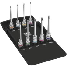 Jeu de douilles à embouts TORX®, avec fonction de retenue pour un vissage particulièrement commode allié à un risque amoindri de perdre la vis lors de son acheminement vers la pièce.