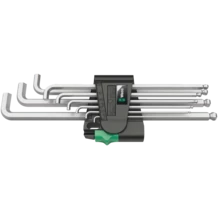 Jeu de clés mâles coudées haute qualité à jambe extra-courte, utilisables sur les vis difficilement accessibles. Pour vis six pans creux. Hex-Plus offre des surfaces d'appui plus vastes dans la tête de vis. L'effet d'entaille est ce faisant réduit au minimum, la destruction de la tête de la vis quasiment éliminée. La sphère terminant le bras long permet un travail sûr, même dans les situations de montage complexes. Version à chromage soigné, garantissant une haute tenue à la corrosion. Accès rapide grâce à la mention de la taille portée sur la clé par gravage laser et résistant de ce fait à l'abrasion. Sous clip très pratique, dont le matériau inusable garantit un maintien sûr et un prélèvement aisé des clés mâles coudées.