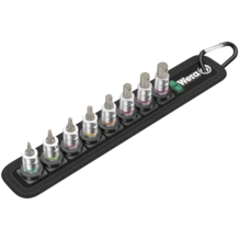 Sangle porte-outils en textile très résistant et design Wera, avec 9 douille-embouts, sur un espace réduit. Le mécanisme "Twist to Unlock", très souple, assure un maintien en toute sécurité et un retrait facile des douilles. Avec le système Take it easy une couleur = une dimension afin de trouver très facilement l'outil nécessaire. Un mousqueton permet la fixation au passant de ceinture ou à une sacoche. Douille-embouts particulièrement courtes et robustes présentant tous les avantages de la technologie Wera. Embout-douille à fonction de retenue pour un vissage simple sans risque de perdre la vis lors du montage. Verso en scratch pour une fixation simple, au mur, à l'étagère, à la servante d'atelier ou au système de transport d'outils Wera 2go.
