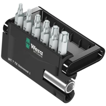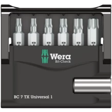 6 embouts TORX® Wera clairement ordonnancés dans un espace ultra-réduit à l'intérieur du Bit-Check très pratique. Embouts Wera extra-rigides pour emploi universel. 1 porte-embouts universel 893/4/1 K utilisable sur visseuse ou porte-mèches de perceuse électronique.