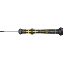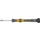 Tournevis anti-électrostatique Micro. Protection sûre contre l'électricité statique et les dommages associés. La crête pivotante servant d'appui à la main et la zone de rotation rapide située juste en-dessous permettent un "tortillement" très rapide. Le repositionnement fastidieux de la main n'a plus lieu d'être. La zone de puissance, incluant des zones tendres, permet la transmission de couples de serrage/desserrage élevés, la zone de précision garantissant quant à elle le bon angle de rotation lors des travaux d'ajustage. La pointe Black Point offre un parfait ajustement et une protection optimisée contre la corrosion. Le repéreur d'outils Take it easy avec repérage couleur en fonction des pointes et des poinçons de taille, pour trouver facilement et rapidement l'outil nécessité.