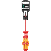 Tournevis Wera VDE (isolé), avec manche Kraftform Plus multicomposants pour un travail rapide et en douceur : zones dures pour une haute vitesse de travail, les zones tendres garantissant quant à elles une transmission de couple élevée. Contrôle pièce à pièce à 10 000 V en immersion dans l'eau, pour un travail en toute sécurité sous la tension admissible de 1 000 V. Le dispositif hexagonal antiroulement empêche les "échappées" importunes sur le lieu de travail.