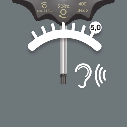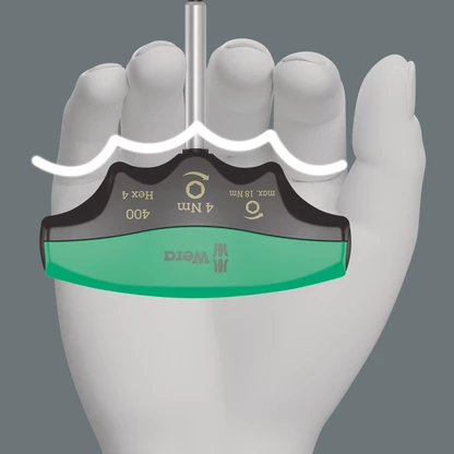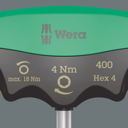 Wera Indicateur à couple fixe pour vis 6 pans. Le couple n'est pas modifiable. Un accouplement à friction très robuste permet de ressentir et entendre parfaitement le déclenchement lorsque le couple est atteint. Le surcouplage est impossible. Le couple de desserrage admissible est très important ce qui évite l'usage d'un autre outil pour cette action. La poignée ergonomique permet un ajustement parfait des doigts sur l'ensemble de la forme et ainsi une transmission optimale de la force.