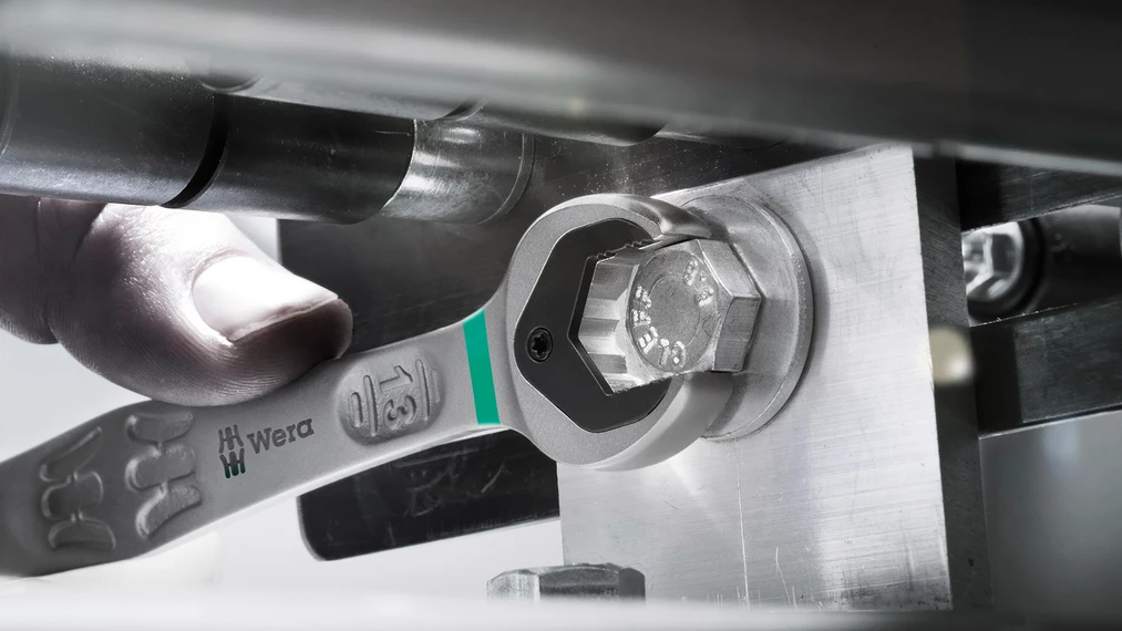Jeu de clés mixtes à cliquet haute qualité signées Wera : Tout ce qu'une clé doit être capable de faire. Et bien davantage encore. En plus rapide, en mieux, en plus esthétique. Bref, un vrai Joker ! La nouvelle génération des clés mixtes à cliquet. Jeu de 4 clés impériales logées dans un robuste étui. Pour vis à tête hexagonale / écrous hexagonaux. Avec fonction de retenue assurée par une plaque métallique implantée dans la fourche, réduisant le risque d'égarer vis et écrous. La plaque métallique interchangeable située dans la fourche bloque les vis et les écrous grâce à ses dents extra-dures et diminue le risque de ripage. La butée terminale intégrée est à même d'empêcher le glissement vertical hors de la tête de vis et permet le déploiement de couples élevés. La morphologie dodécagonale engendre une liaison géométrique intime avec la vis ou l'écrou, réduisant le risque de ripage. L'angle de reprise de 30° seulement côté fourche permet d'éviter le retournement laborieux de la clé lors du vissage. Mécanisme à cliquet à denture exceptionnellement fine (80 dents) côté œillet, offrant un maximum de souplesse même aux endroits exigus. Le forgeage à géométrie spécialement étudiée assure une transmission de couple élevée et une haute résistance à la flexion. Réalisation en acier chrome-molybdène performant, avec revêtement nickel-chrome pour une haute tenue à la corrosion. Avec repéreur d'outil Take it easy : identification des tailles par couleur.