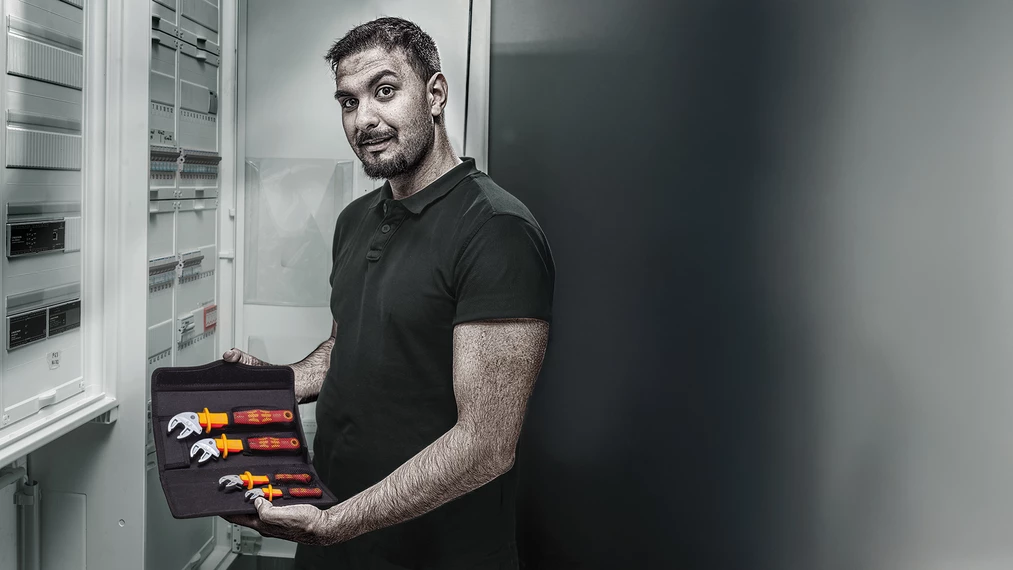 - Outil contrôlé pièce à pièce avec manches isolés pour travailler en toute sécurité jusqu'à 1 000 volts, avec protection antidérapage et fonction coulissante permettant l'ouverture sécurisée et sans contact des mors non isolés