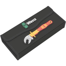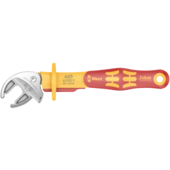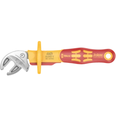 Outil contrôlé pièce à pièce à 10 000 V conformément à la norme IEC 60900 pour un travail en toute sécurité à la tension admissible de 1 000 V. La clé à fourche réglable VDE s'adapte sans paliers et automatiquement à toutes les tailles hexagonales dans la plage de dimensions indiquée, métrique et impériale. Le mécanisme de levier intégré serre fermement la vis ou l'écrou entre les mors, ce qui réduit considérablement le risque de dérapage ou d'endommagement de la pièce. La fonction cliquet permet un vissage rapide et uniforme sans désengagement de la clé. Les prismes permettent un angle de reprise de seulement 30°. La conception à une seule branche associée à la fonction cliquet et au prisme permet de travailler même dans les espaces réduits. La Joker 6004 VDE réglable dispose d'un manche agréable au toucher grâce à l'isolation plastique bicomposant. La protection antidérapage à l'avant du manche améliore la sécurité. Protection supplémentaire par la fonction coulissante permettant l'ouverture sécurisée et sans contact des mors non isolés.
