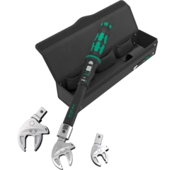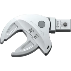 Clé à fourche interchangeable auto-ajustable sur les vis à tête hexagonale et écrous hexagonaux, pour les clés dynamométriques de la série Click-Torque X et XP avec admission 14x18 mm. Couvre toutes les dimensions métriques et impériales dans le domaine d'utilisation correspondant. Les mors parallèles réglables en continu remplacent plusieurs clés mixtes de dimension unique. La taille nécessaire se règle sans paliers et automatiquement au contact des vis ou des écrous hexagonaux. Le mécanisme de levier intégré serre fermement la vis ou l'écrou entre les mors, ce qui réduit considérablement le risque de dérapage ou d'endommagement de la pièce. Grâce à la fonction cliquet, le vissage se fait rapidement, uniformément et sans désengagement de la clé. Les prismes permettent un angle de reprise de seulement 30°.