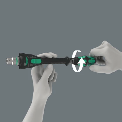 Les cliquets Zyklop Speed offrent une vitesse de rotation élevée : l’assemblage en masse oscillante permet une accélération du vissage. La symétrie de rotation du manche Kraftform, associée à la douille à course libre, permet une approche très rapide. Notamment lorsque le cliquet n’ est pas encore en action.
