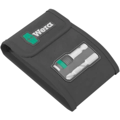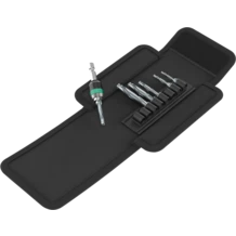 Jeu d'embouts-tarauds combinés 7 pièces Wera dans une pochette pliable robuste 9570. Emmanchement 1/4" pour porte-embouts selon DIN ISO 1173-D 6,3. Avec porte-embouts à serrage rapide Rapidaptor pour visseuse ou utilisation sur le porte-mèches d'une perceuse électronique. Très bonne transmission de la force grâce à la queue hexagonale. HSS = acier rapide haut rendement. Matériau à élasticité adaptée pour une longue durée de vie. Très bonnes propriétés de centrage. Filetage sans problème. Évacuation impeccable des copeaux. Risque de coincement quasi exclu. Retour précis.