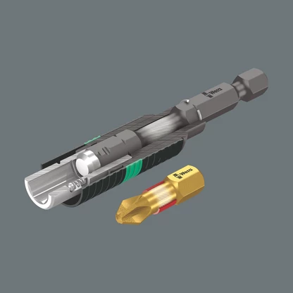 Les pics de contraintes survenant lors du vissage mécanique entraînent souvent une usure précoce de l’embout ou la destruction de la vis. Minimiser ces pics de contrainte permet d’accroître la productivité et la sécurité du vissage. Le système BiTorsion Wera prévient l’usure précoce. La durée de vie de l’outil est rallongée et la productivité accrue de façon significative lors du vissage mécanique.