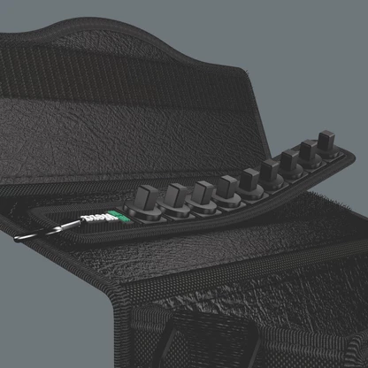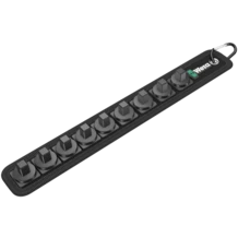 Sangle porte-outils en textile très résistant et design Wera, pour 8 douilles sur un espace réduit. Un mécanisme "Twist to Unlock", très souple, assure un maintien en toute sécurité et un retrait facile des douilles. Un mousqueton permet la fixation au passant de ceinture ou à une sacoche. Verso en scratch pour une fixation simple, au mur, à l'étagère, à la servante d'atelier ou au système de transport d'outils Wera 2go.