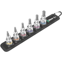 Sangle porte-outils en textile très résistant et design Wera, avec 6 douille-embouts, sur un espace réduit. Le mécanisme "Twist to Unlock", très souple, assure un maintien en toute sécurité et un retrait facile des douilles. Avec le système Take it easy une couleur = une dimension afin de trouver très facilement l'outil nécessaire. Un mousqueton permet la fixation au passant de ceinture ou à une sacoche. Douille-embouts particulièrement courtes et robustes présentant tous les avantages de la technologie Wera. Embout-douille à fonction de retenue pour un vissage simple sans risque de perdre la vis lors du montage. Verso en scratch pour une fixation simple, au mur, à l'étagère, à la servante d'atelier ou au système de transport d'outils Wera 2go.