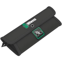 Jeu de clés à fourche 12 pièces Joker 6003 avec une version extrafine pour la taille 15. Comme les espaces de vissage deviennent de plus en plus exigus sur les vélos, il faut des outils qui permettent aux utilisateurs de bien travailler même dans ces situations. Les espaces de travail étroits nécessitent des points d'ancrage supplémentaires de l'outil. Est-il possible de modifier les clés mixtes de manière à augmenter leurs possibilités d'ancrage ? Le côté fourche coudé à 7,5° et la forme dodécagonale permettent de doubler les points d'ancrage. Lors de la rotation répétée à 180° de la clé dans l'axe longitudinal pendant le vissage, il existe quatre possibilités d'ancrage et les écrous ou têtes de vis peuvent être "agrippés" tous les 15°. La Joker 6003 avec la forme astucieuse de sa fourche augmente considérablement le spectre d'utilisation dans les espaces de montage exigus. La Joker 6003 trouve pour ainsi dire d'elle-même le point d'ancrage suivant à chaque rotation. Le côté œil, fin mais robuste, est coudé à 15° par rapport à l'axe de l'outil. Le traitement de surface haut de gamme assure une protection anticorrosion supérieure durable. Avec système de repérage d'outils Take it easy : code couleur en fonction de la taille. Avec ses bandes à scratch au dos, l'étui Joker peut se fixer au mur, sur une étagère ou une servante d'atelier et est compatible avec le système Wera 2go.