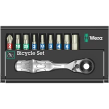 Un large choix d'outils vélo pour un encombrement minimum. Le classement des 9 embouts en acier inoxydable en fonction de la pointe et de la taille permet d'accéder rapidement à l'outil souhaité. Avec cliquet à embout Wera Zyklop Mini 1 en acier massif forgé. Le mécanisme à fine denture de 60 dents permet un faible angle de reprise de 6° pour un travail précis. La molette permet de visser rapidement dans les endroits trop exigus pour le cliquet. Inversion gauche/droite aisée. Tête et manche du cliquet ergonomiques. Repéreur d'outils Take it easy avec code couleur en fonction de la taille pour trouver rapidement et facilement l'outil nécessaire.
