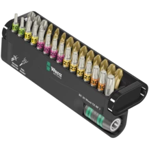Jeu d'embouts et porte-embouts particulièrement adaptés au travail du bois. Grâce à leur forme spéciale, les embouts 867/1 TORX® HF maintiennent parfaitement sur l'outil les vis TORX® d'après les spécifications d'Acument Intellectual Properties ! C'est particulièrement utile dans les endroits difficiles d'accès où il n'est pas possible de tenir la vis avec l'autre main. Ils conviennent aussi aux vis Würth ASSY et aux vis Altenloh SPAX T-STAR plus. Avec repéreur d'outils Take it easy : code couleur en fonction de la taille. Comprend un porte-embouts universel avec aimant annulaire pour le maintien à toute épreuve des vis même lourdes et Rapidaptor qui permet l'insertion des embouts sans actionner la douille. Le Bit-Check permet d'avoir une vue d'ensemble rapide des outils disponibles. Les embouts qui ne sont pas nécessaires sont simplement replacés dans l'assortiment et ne se perdent pas. Transport facile, par ex. dans la poche de chemise. Le Bit-Check peut être posé sur le poste de travail, ce qui garantit un accès rapide à l'outil.
