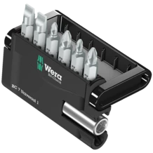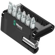 6 embouts Wera clairement ordonnancés dans un espace ultra-réduit à l'intérieur du Bit-Check très pratique. Embouts Wera extra-rigides pour vis six pans creux, pour emploi universel. 1 porte-embouts universel 893/4/1 K utilisable sur visseuse ou porte-mèches de perceuse électronique.