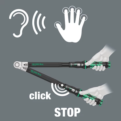 Le mécanisme produit un déclic audible et perceptible dès que l’on atteint la valeur de couple réglée.