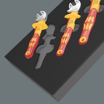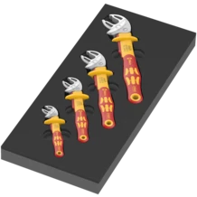 Insert en mousse durable ; bicolore pour repérer rapidement les pièces manquantes ; compatible avec la servante d'atelier Tool Rebel. Comprend 4 clés à fourche auto-ajustables 6004 Joker VDE.