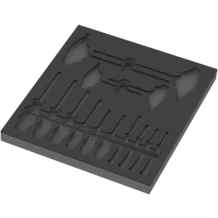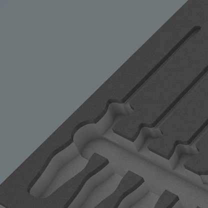 1 insert en mousse durable, sans outils ; bicolore pour repérer rapidement les pièces manquantes ; largeur x hauteur x profondeur : 344 x 30 x 392 mm ; insert en mousse de rechange pour article Wera 9712 ; compatible avec la servante d'atelier Tool Rebel.