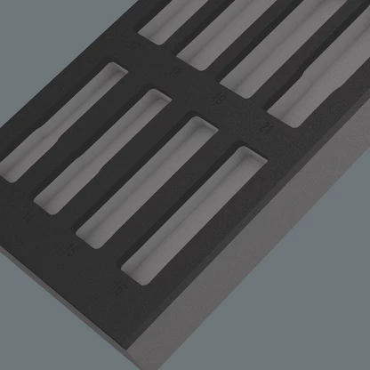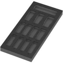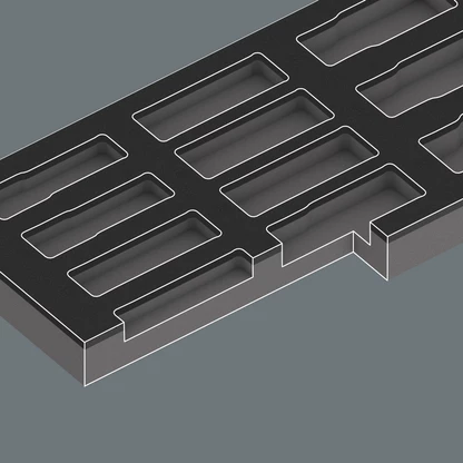 1 insert en mousse durable, sans outils ; bicolore pour repérer rapidement les pièces manquantes ; largeur x hauteur x profondeur : 172 x 30 x 392 mm ; insert en mousse de rechange pour article Wera 9725 ; compatible avec la servante d'atelier Tool Rebel.