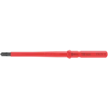Lame VDE pour système de manche et lames interchangeables Kraftform Kompakt. Empreinte combinée fente et Phillips, notamment pour les borniers, boîtes à fusibles, commutateurs, relais. Changement ultrarapide de la lame sans outil spécial. Outils contrôlés pièce à pièce conformément à la norme IEC 60900. Contrôle pièce à pièce à 10 000 V pour travailler en toute sécurité sous la tension admissible de 1 000 V. La pointe Wera Black Point offre un ajustement parfait et une protection anticorrosion accrue. Avec repéreur d'outils Take it easy : code couleur en fonction des empreintes et indication de la taille gravée au laser. Le dispositif hexagonal antiroulement empêche une échappée involontaire de la lame.