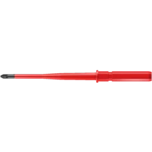 Lame interchangeable à diamètre réduit et isolation protectrice intégrée, permettant d'atteindre et d'actionner les éléments à vis et à ressort situés en profondeur. Profil combiné à fente / Phillips, utilisable en particulier sur borniers, armoires à fusibles, interrupteurs et relais. Outils testés un par un conformément à la norme IEC 60900. Contrôle pièce à pièce à 10 000 V , pour un travail en toute sécurité sous la tension admissible de 1 000 V. La pointe Wera Black Point offre un parfait ajustement et une protection optimisée contre la corrosion.
