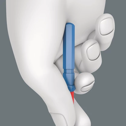 Lame VDE pour système de manche et lames interchangeables Kraftform Kompakt. Changement ultrarapide de la lame sans outil spécial. Outils contrôlés pièce à pièce conformément à la norme IEC 60900. Contrôle pièce à pièce à 10 000 V pour travailler en toute sécurité sous la tension admissible de 1 000 V. Le profil Hex-Plus empêche l'arrondissement des vis à six pans creux. La pointe Wera Black Point offre un ajustement parfait et une protection anticorrosion accrue. Avec système de repérage d'outils Take it easy : code couleur en fonction des empreintes et indication de la taille gravée au laser. Le dispositif hexagonal antiroulement empêche une échappée involontaire de la lame.