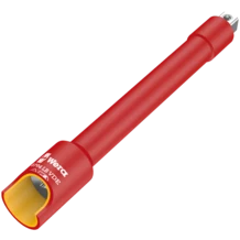 Rallonge VDE 3/8" à sécurité renforcée grâce à l'isolant bi-composant. Un isolant jaune à l'intérieur est surmoulé par un isolant VDE rouge à l'extérieur pour permettre un repérage simple d'un éventuel dommage sur l'isolant. Contrôle unitaire à 100% sous 10.000 V selon l'IEC 60900 pour un travail en toute sécurité jusqu'à 1.000 V.