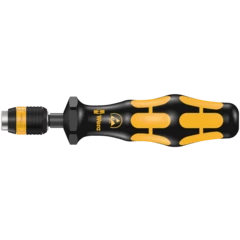 Tournevis dynamométrique Wera. Protection sûre contre les décharges électrostatiques et les dommages qu'elles causent. Avec couple préréglé en usine à la demande du client. Pour toutes les applications qui nécessitent constamment le même couple et une reproductibilité de la précision. La valeur de couple peut être ajustée dans les limites de la plage de mesure avec l'outil spécial 05137003001. Puis contrôler la valeur réglée à l'aide d'un couplemètre courant. Technologie Rapidaptor pour un changement ultrarapide des embouts. Couple de desserrage illimité pour desserrer les vis grippées. Manche Kraftform multicomposant combinant des zones dures et tendres permettant de travailler rapidement tout en ménageant la paume des mains. Convient pour embouts à emmanchement Halfmoon 4 mm (série Wera 9) et HIOS 4 mm (série Wera 21).